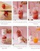 Use visuals that emphasize how fast and satisfying it is — dropping fruit pieces in, blending smoothly, then pouring directly from the cup. A bright, aesthetic background (like the pink one in the image) boosts virality on TikTok and Instagram.